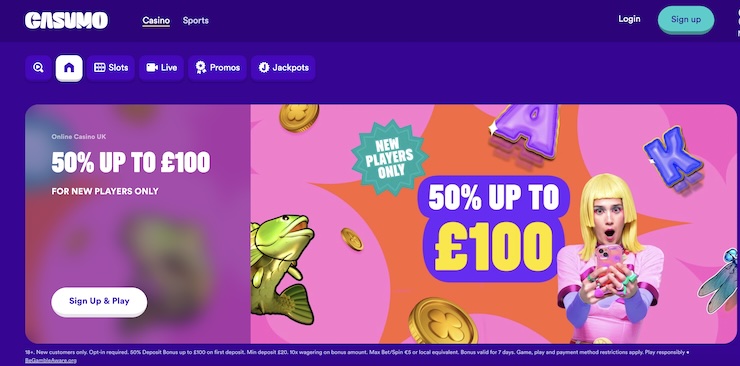 | Casumo | 4.35/5 | 50% up to £100 | Gamified Experience |