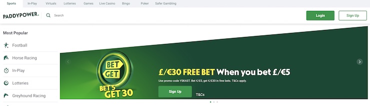 | Football | Extensive | Yes | Yes | Paddy Power |